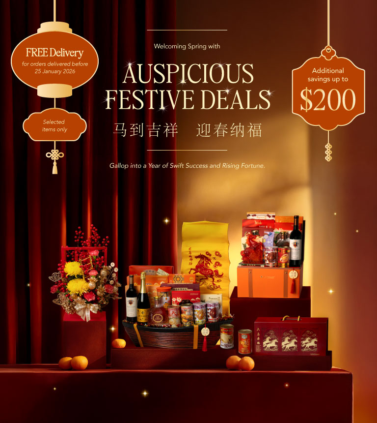 Great luck at the start of Spring! Our Auspicious Deals collection features 8 hand-picked gifts that deliver the perfect blend of high quality and exceptional savings this Lunar New Year. We've selected these popular items—ranging from stunning floral arrangements to bestselling hampers—to give you maximum festive impact for minimum spend.