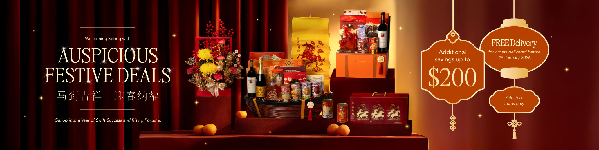 - Enjoy savings of up to $200 off on selected Chinese New Year floral arrangements and hampers.